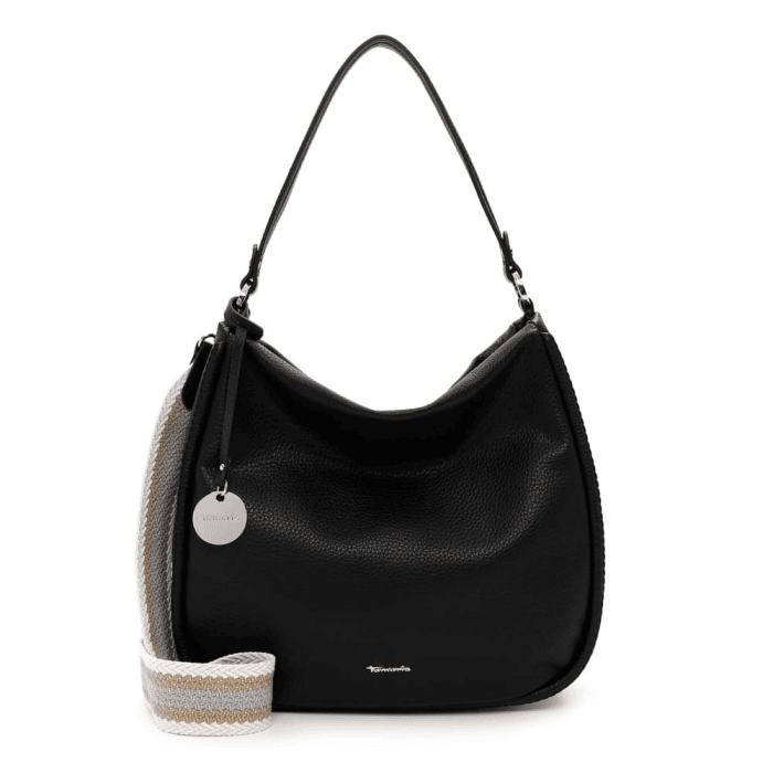 Kabelka TAMARIS do ruky i na rameno s odnímatelným délkově nastavitelným textilním popruhem z dezénové syntetické kůže v černé barvě. Kabelka se uzavírá na zip. Na zadní straně kabelky je zipová kapsa. Uvnitř textilní podšívka v černé barvě. Vnitřní výbava - 1 kapsa na zip a 1 kapsa na drobnosti. Šířka kabelky je 33 cm, výška 32 cm, šířka dna 13 cm.