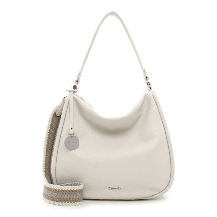 Kabelka TAMARIS do ruky i na rameno s odnímatelným délkově nastavitelným textilním popruhem z dezénové syntetické kůže v béžové barvě. Kabelka se uzavírá na zip. Na zadní straně kabelky je zipová kapsa. Uvnitř textilní podšívka v šedé barvě. Vnitřní výbava - 1 kapsa na zip a 1 kapsa na drobnosti. Šířka kabelky je 33 cm, výška 32 cm, šířka dna 13 cm.