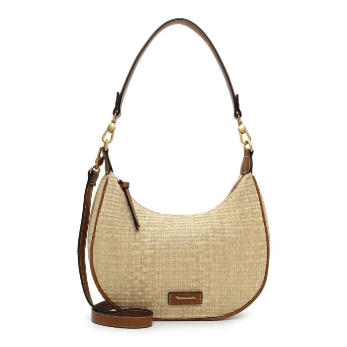 Kabelka TAMARIS do ruky i na rameno s odnímatelným délkově nastavitelným popruhem z proplétaného syntetického materiálu v béžové barvě. Kabelka se uzavírá na zip. Uvnitř textilní podšívka v béžové barvě. Vnitřní výbava - 1 kapsa na zip a 1 kapsa na drobnosti. Šířka kabelky je 27 cm, výška 17 cm, šířka dna 8 cm.