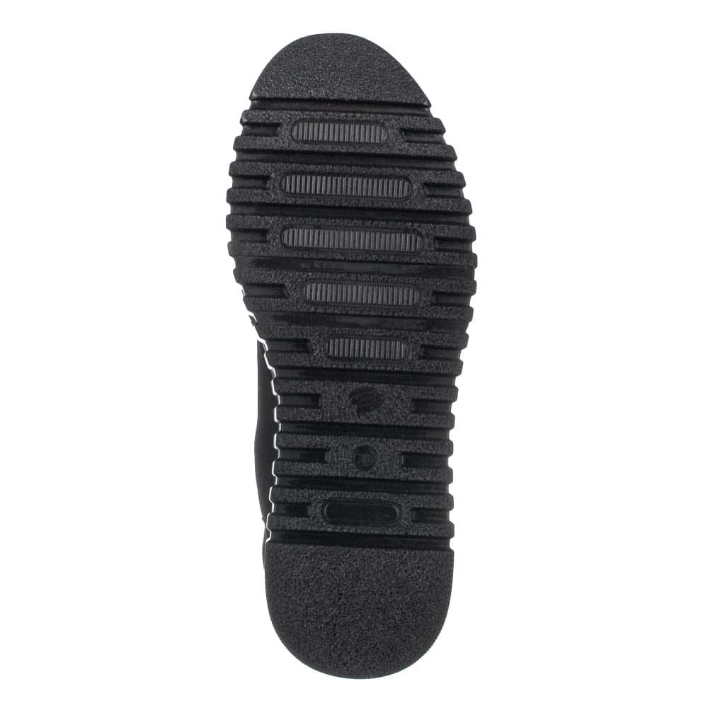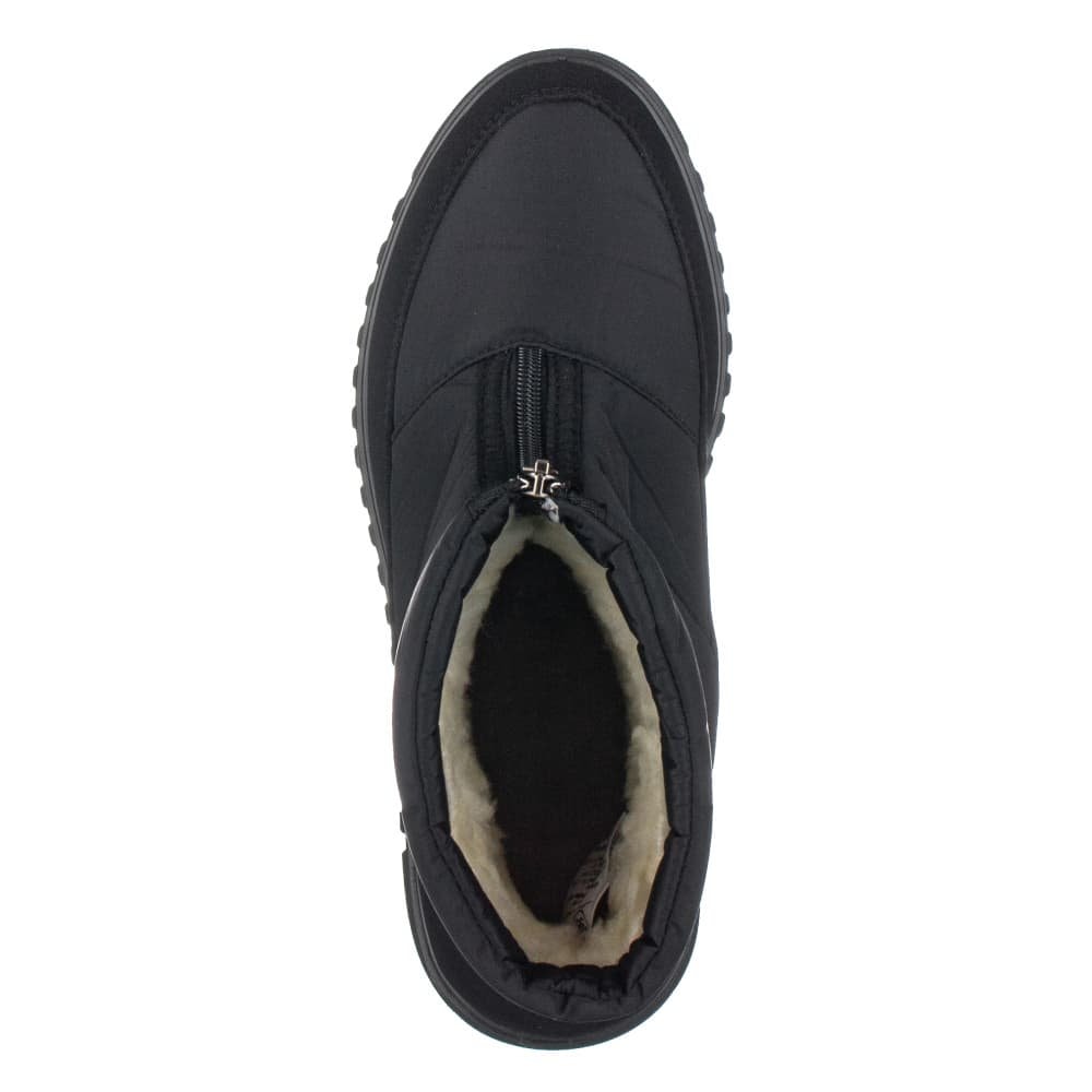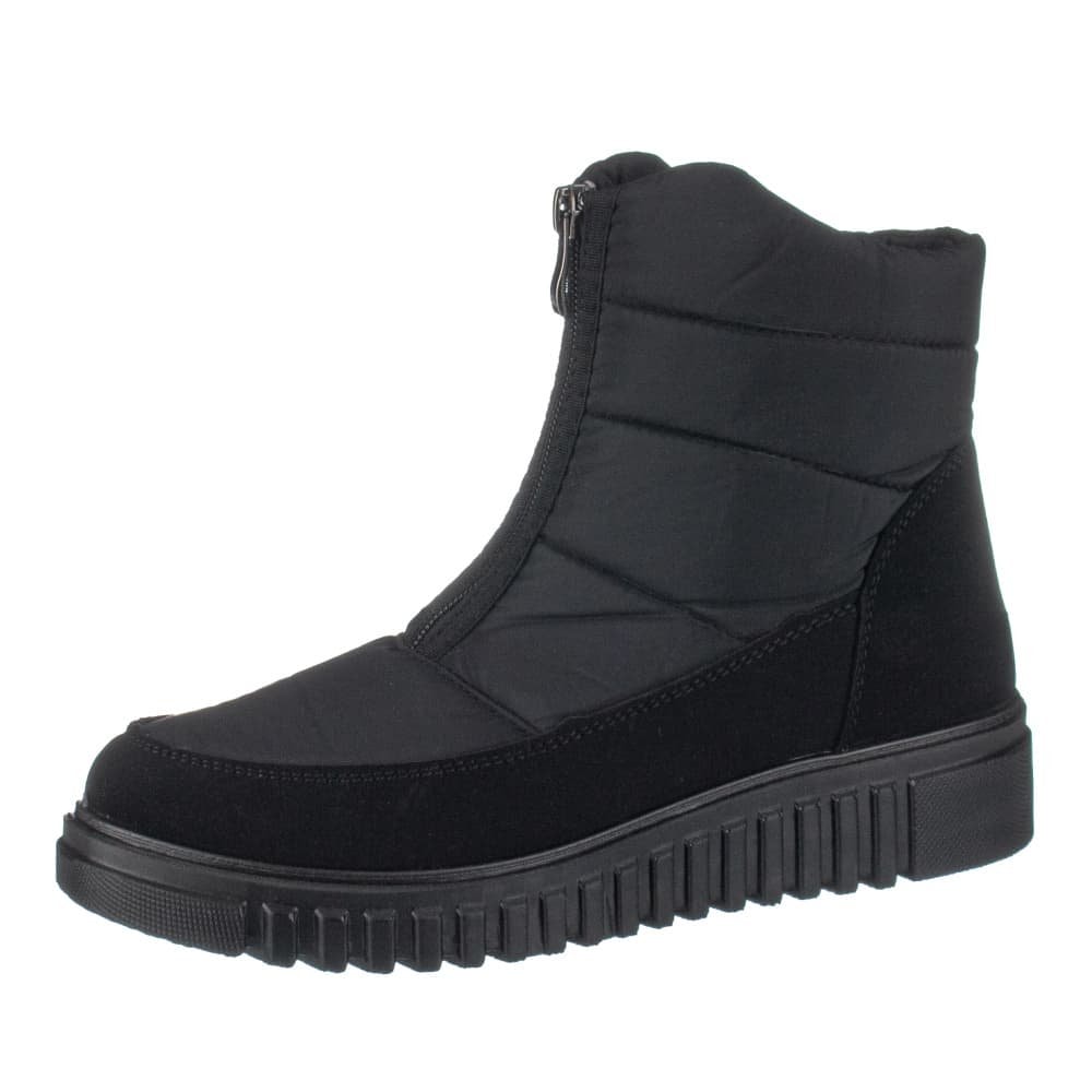 Sněhule v kombinaci textilního a syntetického materiálu imitující nubuk v černé barvě. Obuv se uzavírá nártovým zipem. Uvnitř je obuv vyteplena příjemným textilním kožíškem a vyjímatelnou zateplenou jemně vyměkčenou stélkou.